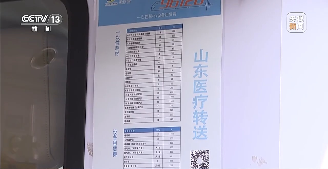 统一号码、统一形象、统一调度,湖南和山东两地的转运平台,也做到了收费标准的统一。比如,湖南的96320平台按照医护人员数量不同,划定了不同起步价和里程单价,车上医疗设备不单独收费。而山东的96120平台,则是在里程费之外单收设备使用费。