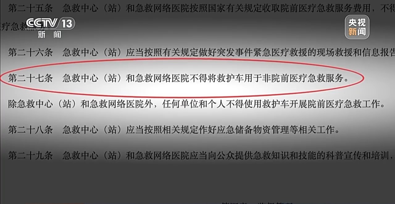中国卫生法学会副会长 郑雪倩:在这个法律规定里强调的是要保证院前急救工作的落地,比如说120它就是专号专用,它的职能和工作性质都是要保证院前半径的抢救工作,而不是非急救的医疗转运。所以政府必须要考虑要满足,在每一个区域大概一个多大的半径下,比如15分钟呼救以后,急救车就得到达。